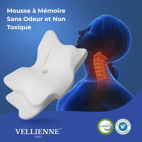 Il soutient délicatement le cou et offre un appui confortable, contribuant ainsi à atténuer l’inconfort.